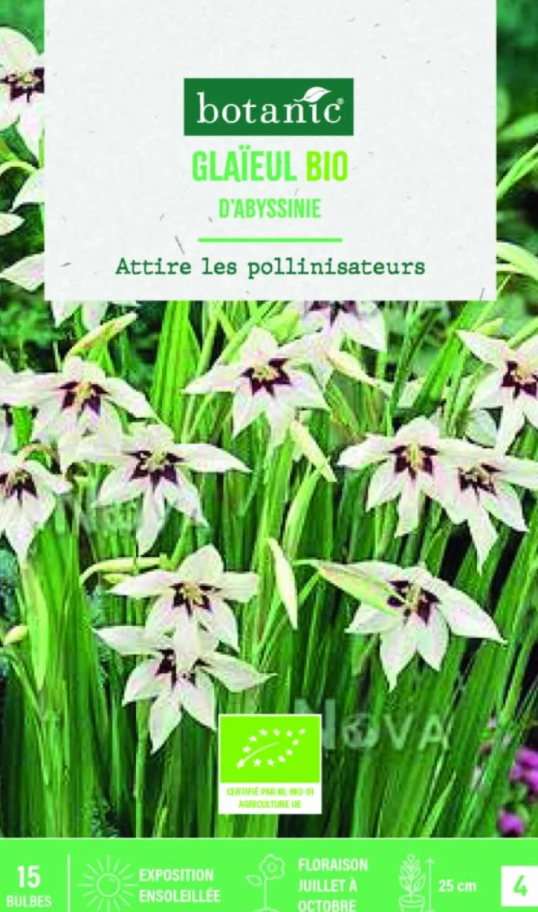 | Conseils d’entretien | Plantez les bulbes à 10 cm de profondeur et 12 cm de distance, dans un sol riche, léger et bien drainé, dans un coin ensoleillé et à l’abris du vent. Pour une floraison échelonnée de juillet à octobre, plantez vos bulbes tous les 15 jours de mars à juin. Arrosez copieusement à la plantation puis régulièrement pendant la végétation avec une solution d’engrais universel organique liquide. Avant l’arrachage, laissez quelques feuilles jusqu’à ce qu’elle jaunissent pour permettre au bulbe de reconstituer ses réserves. Arrachez les bulbes fin octobre et conservez-les dans un sec et aéré jusqu’au printemps suivant. La date de floraison et hauteur varient selon le sol, l’exposition et le climat.