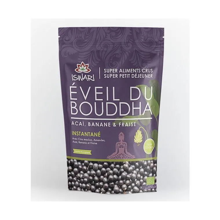 | Composition | Graines de chia et lin broyées*, Sarrasin moulu*, Lucuma*, sucre de Fleur de Coco* (à faible indice glycémique et très nutritif), Sarrasin germé*, Banane poudre* (7%), Amandes moulues (6%*, Fraise poudre (3%)*, Açaï poudre* (2%). *Ingrédients issus de l’agriculture biologique, certifié par ECOCERT – FRBIO-01