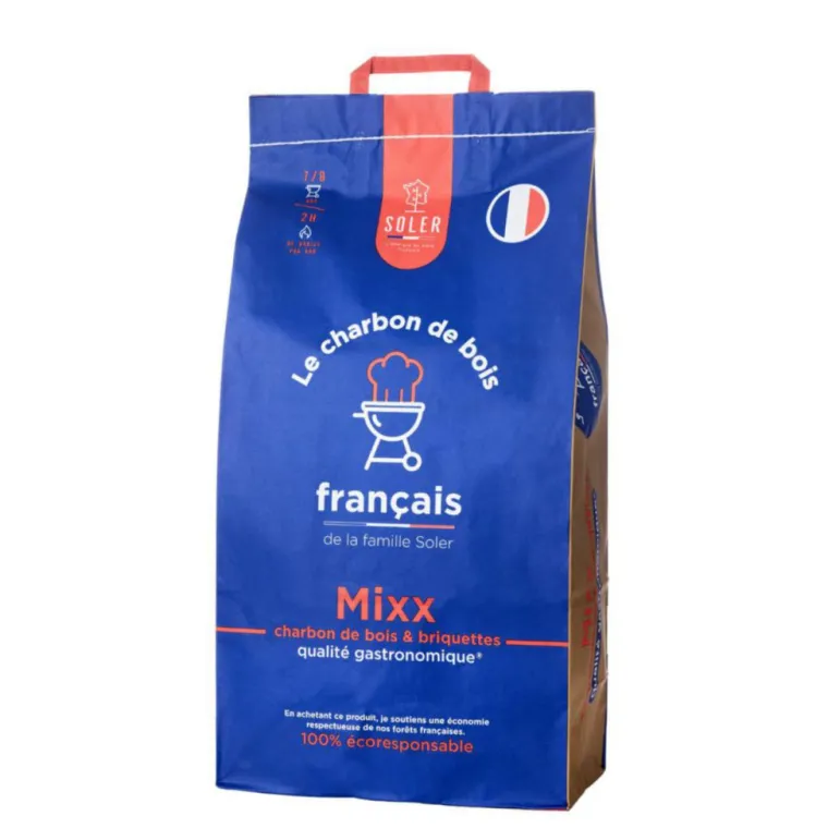 | Conseils d’entretien | Pour l’allumage de notre Mixx charbon de bois et briquettes, nous vous conseillons la cheminée d’allumage.Déposez la cheminée d’allumage sur la grille foyère de votre barbecue. Placez en dessous de la cheminée un papier journal, un bout du sac de votre Mixx charbon de bois et briquettes* ou un allume-feu naturel. Versez ensuite du Mixx charbon de bois et briquettes dans votre cheminée d’allumage. Ajustez la quantité selon vos besoins. Allumez le papier ou l’allume-feu. Une fois que le Mixx charbon de bois et briquettes s’est transformé en braises, versez-le dans la cuve de votre barbecue.Pour finir, déposez la grille de cuisson du barbecue sur son emplacement. Vous êtes prêts à cuisiner !*Notre Mixx charbon de bois et briquettes est emballé dans un sac en papier kraft 100% recyclable. Produit français, issu de forêts gérées durablement autour de notre site de production à Gyé-sur-Seine (Aube, Grand Est).