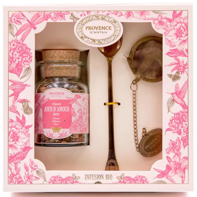 | Composition | Gingembre*, Pomme*, Hibiscus*, Cynorrhodon*, Mûre*, Cannelle*, Réglisse*, Arôme naturel de Cerise*, Sarriette*, Myrte Citronnée*, Poivre Noir*, Ecorce de Cirton*, Rose*, Stévia* – *100% des ingredients sont issus de l’agriculture biologique