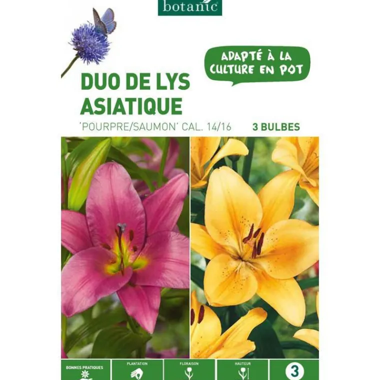 | Conseils d’entretien | N’hésitez pas à ajouter de l’engrais universel liquide pour obtenir de meilleurs résultats. Les lys demandent un sol bien drainé et riche en humus. Evitez les endroits soumis à la réverbération. Conservez les bulbes dans un endroit frais et sec jusqu’à la plantation.