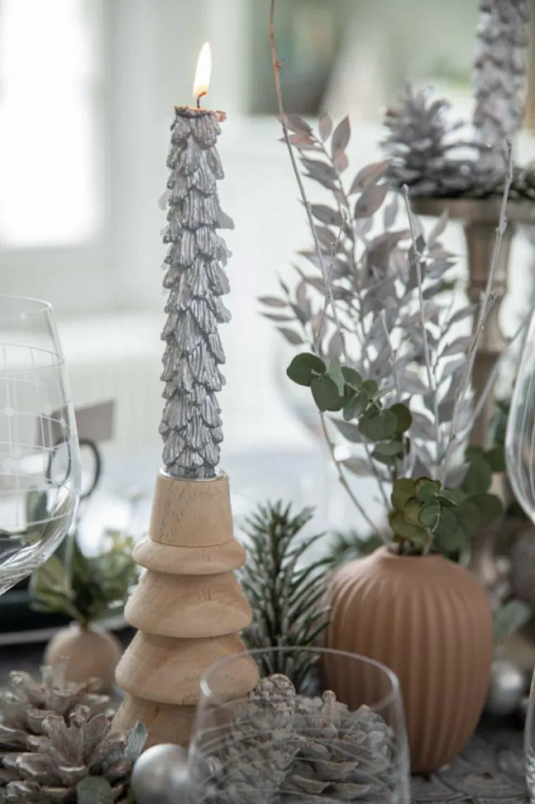 Porte bougie en céramique bicolore naturel/vert petit modèle – Ø 10 x H 17,5 cm