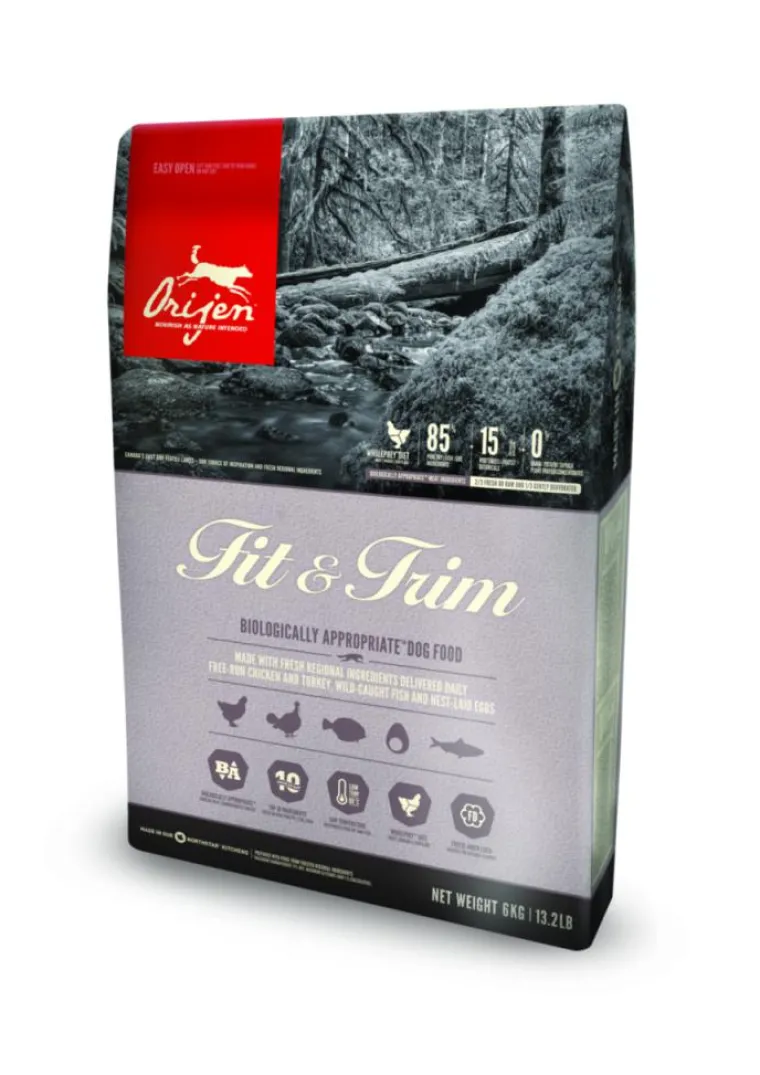 | Composition | Cette nourriture contient moins de matières grasses et de glucides et bénéficie d’un mélange unique de fibres de citrouilles, de pommes et de courges. ORIJEN Fit & Trim déborde de protéines animales nutritives provenant de volaille élevée en liberté, de poissons sauvages et d’oeufs pondus au nid, tous livrés FRAIS ou CRUS dans des proportions WholePrey TM .Viande de poulet fraîche (14%), oeufs entiers frais (6%), hareng entier frais (6%), viande de dinde fraîche (6%), foie de poulet frais (6%), plie entière fraîche (4%), maquereau entier frais (4%), merlu du pacifique entier frais (4%), foie de dinde frais (4%), coeur de poulet frais (4%), poulet (déshydraté, 4%), dinde (déshydratée, 4%), maquereau entier (déshydraté, 4%), sardines entières (déshydratées, 4%), hareng entier (déshydraté, 4%), goberge de l’Alaska (déshydratée, 4%), fibre de lentilles, lentilles rouges, lentilles vertes, pois verts, pois chiches, pois jaunes, haricots pinto, haricots ronds blancs, cartilage de poulet (déshydraté, 1%), coeur de dinde frais (1%), fibre de pomme, algues séchées (source d’ADH et d’AEP), citrouille (déshydratée), courge musquée (déshydratée), carottes (déshydratées), foie de poulet (lyophilisé), foie de dinde (lyophilisé), citrouille entière fraîche, courge musquée entière fraîche, courgettes entières fraîches, panais entiers frais, carottes fraîches, pommes red delicious entières fraîches, poires bartlett entières fraîches, chou vert frisé frais, épinards frais, feuilles de betteraves fraîches, feuilles de navet, varech brun, canneberges entières, bleuets entiers (myrtilles), baies de saskatoon entières, racine de chicorée, curcuma, chardon marie, racine de bardane, lavande, racine de guimauve, fruits de l’églantier. ADDITIFS NUTRITIONNELS (par kg) : Chélate de zinc : 100 mg. Additifs zootechniques : Enterococcus faecium NCIMB10415: 600×10ý6 CFU.Composition : Protéines 42 % Matières grasses 13 % Cendres brutes 8 % Fibres brutes 8 % Humidité 12 % Calcium / Phosphore 1,4 % / 1,1 % Omega-6 / Omega-3 2,2 % / 0,9 % ADH / AEP 0,25 % / 0,15 % Glucosamine 1000 mg/kg Chondroïtine 900 mg/kg L-Carnitine 33 mg/kg Répartition des calories : Énergie métabolisable : 3530 kcal/kg (425 kcal pour une tasse de 250 mL/120 g). Répartition des calories pour maintenir une excellente forme: 48% de protéines, 19% de légumes et de fruits, et 33% de matières grasses.