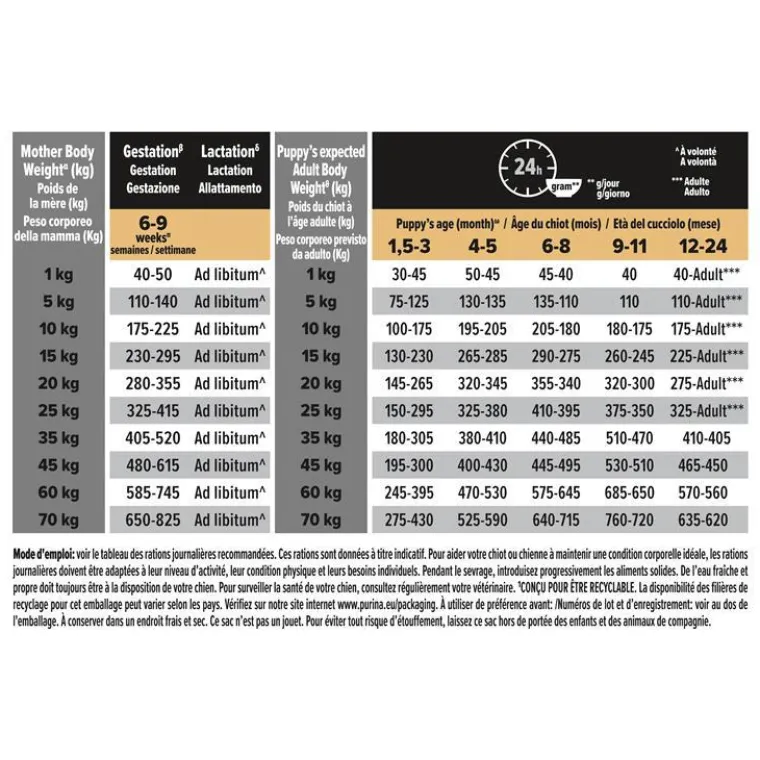 | Composition | COMPOSITION : Saumon* (17%), protéines de saumon déshydratées*, riz* (16%), graisse animale, amidon de maïs, gluten de maïs*, farine de soja*, protéines de soja déshydratées*, œuf déshydraté*, hydrolysat, pulpe de betterave déshydratée*, sels minéraux, maïs*, cellulose, huile de soja, huile de poisson.* Sources de protéines