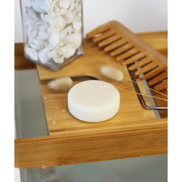 | Conseils d’entretien | Pour l’utiliser correctement, rien de plus simple ! A la suite de votre shampoing, humidifiez votre palet d’après-shampoing solide en le passant sous l’eau et frottez-le légèrement dans vos mains. Faites-le glisser ensuite directement sur vos longueurs mouillées afin de bien répartir le produit. Laissez poser 1 à 2 minutes puis rincez abondamment à l’eau claire et chaude. Pour une utilisation optimale, nous vous conseillons de le conserver à l’abri de l’eau, avec un porte savon adapté pour éviter qu’il ne fonde. Bien conservé, son format vous offre en moyenne 50 utilisations.