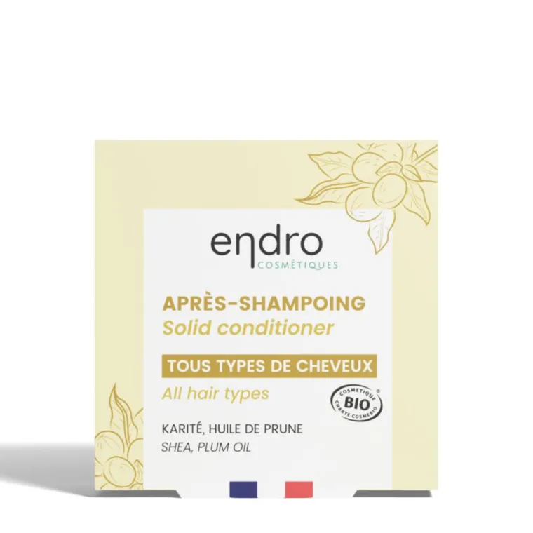 | Conseils d’entretien | Pour l’utiliser correctement, rien de plus simple !A la suite de votre shampoing, humidifiez votre palet d’après-shampoing solide en lepassant sous l’eau et frottez-le légèrement dans vos mains. Faites-le glisser ensuitedirectement sur vos longueurs mouillées afin de bien répartir le produit. Laissez poser 1 à 2minutes puis rincez abondamment à l’eau claire et chaude.Pour une utilisation optimale, nous vous conseillons de le conserver à l’abri de l’eau, avec unporte savon adapté pour éviter qu’il ne fonde. Bien conservé, son format vous offre enmoyenne 50 utilisations.