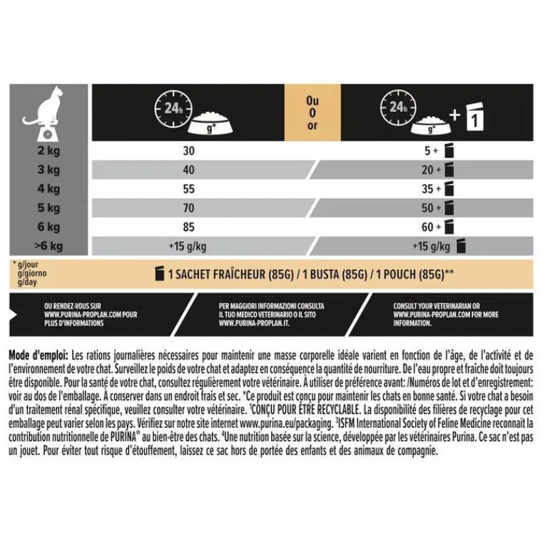 | Composition | Poulet (21 %), riz, gluten de maïs, protéines de volaille déshydratées, maïs, blé, graisse animale, œufs déshydratés, racine de chicorée déshydratée* (2 %), concentré de protéines de pois, sels minéraux, huile de poisson, hydrolysat, levures. *prébiotique naturel.