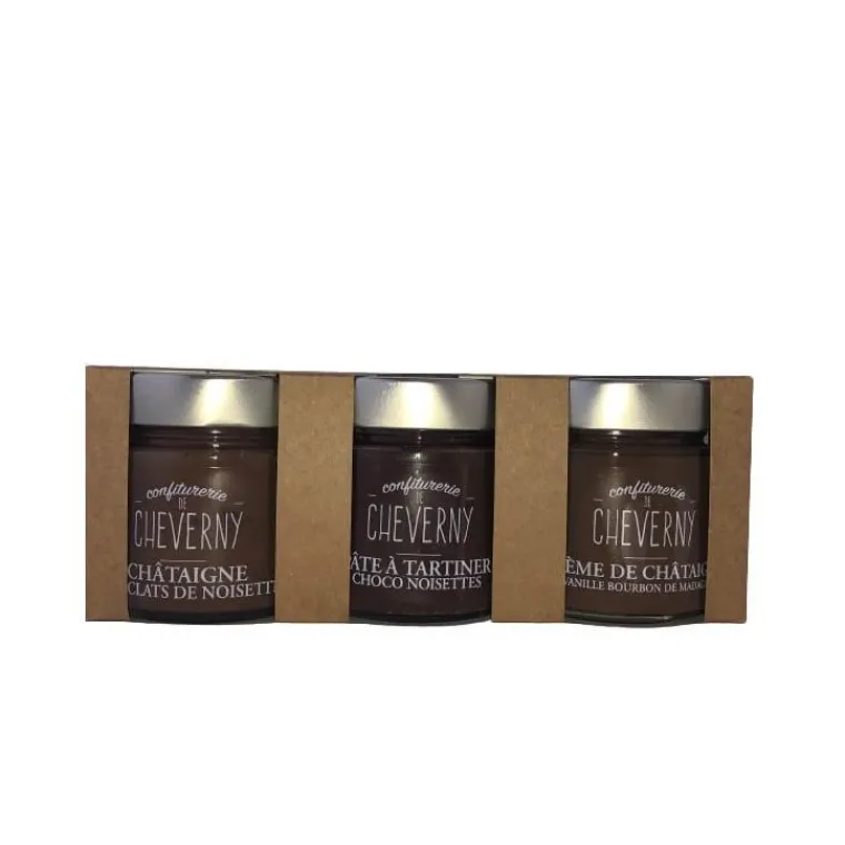 | Valeurs nutritionnelles | Crème de chataigne noisette : Valeurs nutritionnelles pour 100g : Energie 1156 kj/ 273kcal, Matières grasses 4,8g, dont acides gras saturés 0,4g, Glucides 53,8g dont sucres 49,9g, Fibres alimentaires 1,7g, Protéines 2,1g, Sel 0g Allergènes : noisettes Crème de chataigne vanille : Valeurs nutritionnelles pour 100g : Energie 1024 kj/ 241kcal, Matières grasses 0g, dont acides gras saturés 0g, Glucides 57g dont sucres 53g, Fibres alimentaires 1,9g, Protéines 1g, Sel 0g Absence d'allergènes Pâte à tartiner choco noisette : Valeurs nutritionnelles pour 100g : Energie 1454 kj/ 347kcal, Matières grasses 14,8g, dont acides gras saturés 4,7g, Glucides 48,8g dont sucres 40,3g, Fibres alimentaires 3,5g, Protéines 2,7g, Sel 0,04g Absence d'allergènes