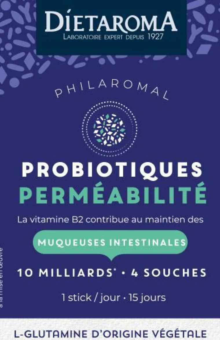 | Composition | Maltodextrine* ; L-glutamine d’origine végétale (issu de maïs) ; extrait de feuille de mélisse (Melissa officinalis) ; souches probiotiques : Lactobacillus acidophilus, Lactobacillus casei, Streptococcus thermophilus, Lactobacillus rhamnosus GG ; vitamine B2 (riboflavine).
