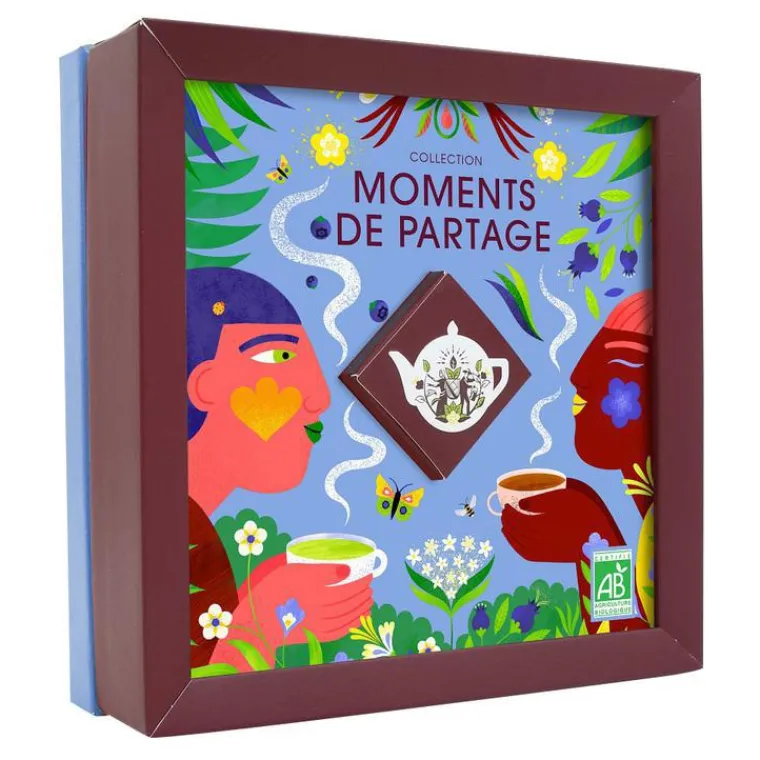 | Composition | Thé Blanc Myrtille & Fleur de Sureau : thé blanc* (66%), citronnelle* (18%), fleur de sureau* (10%), arôme naturel de myrtille (4%), myrtille* (2%). Thé Vert Sencha, Thé Blanc & Matcha : thé vert sencha* (61%), thé blanc* (30%), poudre de matcha* (9%). Thé Noir Coco & Vanille : thé noir* (68.5%), cacao* (16%), noix de coco grillée* (8%), arôme naturel de vanille* (4%), arôme naturel de noix de coco* (3%), vanille* (0.5%). Thé Noir Darjeeling : thé noir Darjeeling* (100%). (*) Ingrédients issus de l’agriculture biologique.