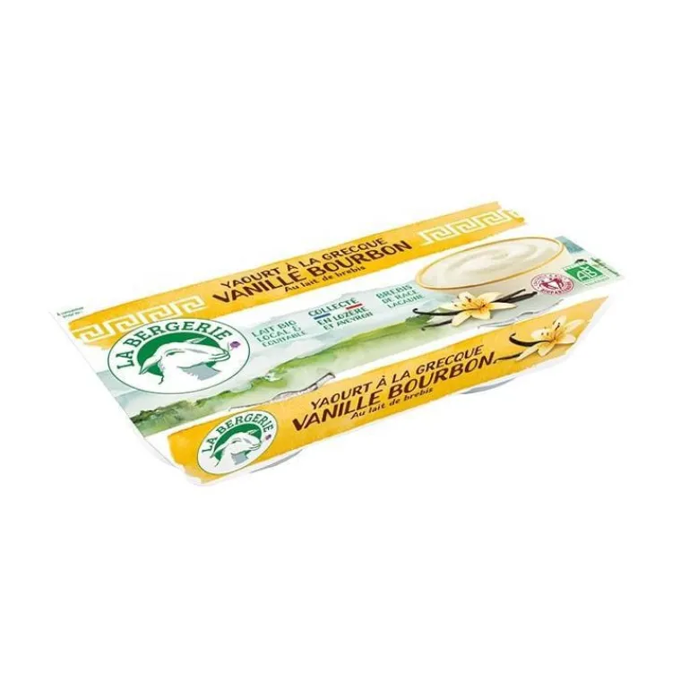 | Composition | LAIT de brebis pasteurisé à 10 % de MG*, sucre de canne non raffiné* 7,2 %, eau, amidon de maïs*, arôme naturel de vanille Bourbon*, épaississant (gomme guar*), jus concentré de citron*, gousses de vanille épuisées*, ferments lactiques sélectionnés (LAIT). * ingrédients issus de l’agriculture biologique