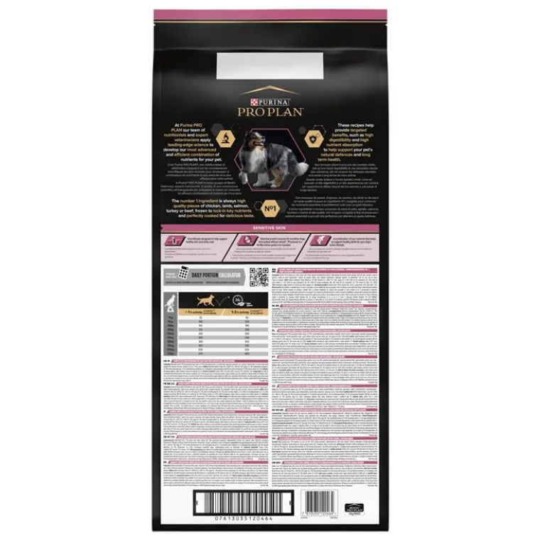 | Conseils d’entretien | Rations journalières recommandées (g/jour) :Poids du chien < 1h d'activité 1 à 3h d'activité1-5kg 35-110 40-125 5-10kg 110-175 125-20010-15kg 175-225 200-26015-20kg 225-275 260-31520-25kg 275-320 315-36525-35kg 320-400 365-46035-45kg 400-475 460-54545-60kg 475-575 545-66060-70kg 575-640 660-730MODE D'EMPLOI : Voir le tableau des rations journalières recommandées (g/jour). Ces rations sont données à titre indicatif. Pour aider votre chien à maintenir une condition corporelle idéale, les rations journalières doivent être adaptées à son niveau d’activité, sa condition physique et ses besoins individuels. De l’eau fraîche et propre doit toujours être à la disposition de votre chien. Pour surveiller la santé de votre chien, consultez régulièrement votre vétérinaire.