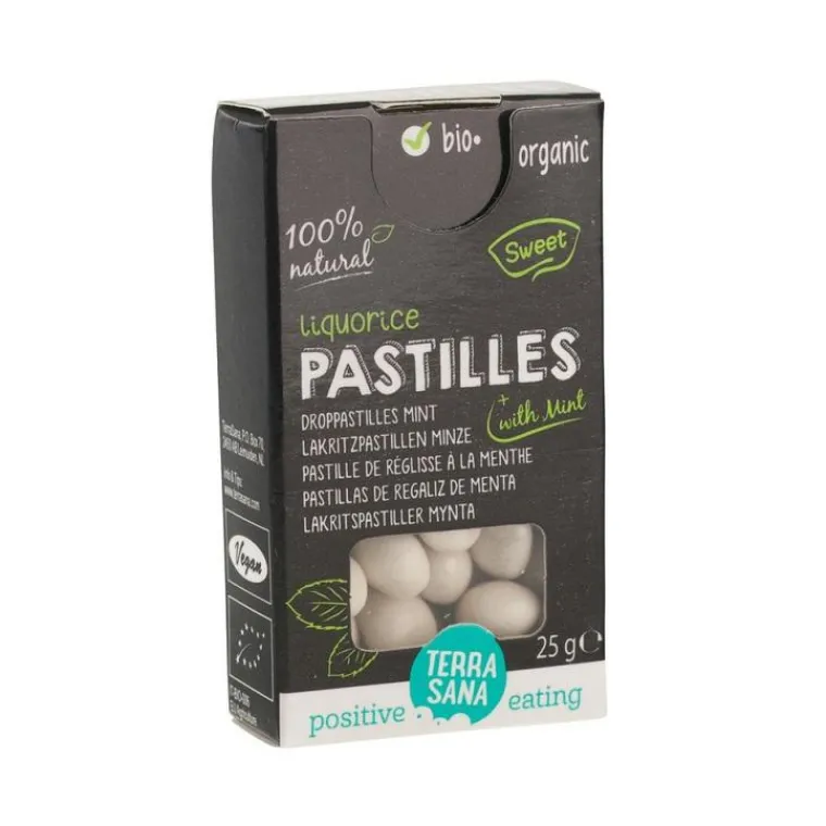 | Composition | sucre de canne cru*, extrait de réglisse pure*, amidon de maïs*, menthe*, vanille* * Ingrédients issus de l’agriculture biologique