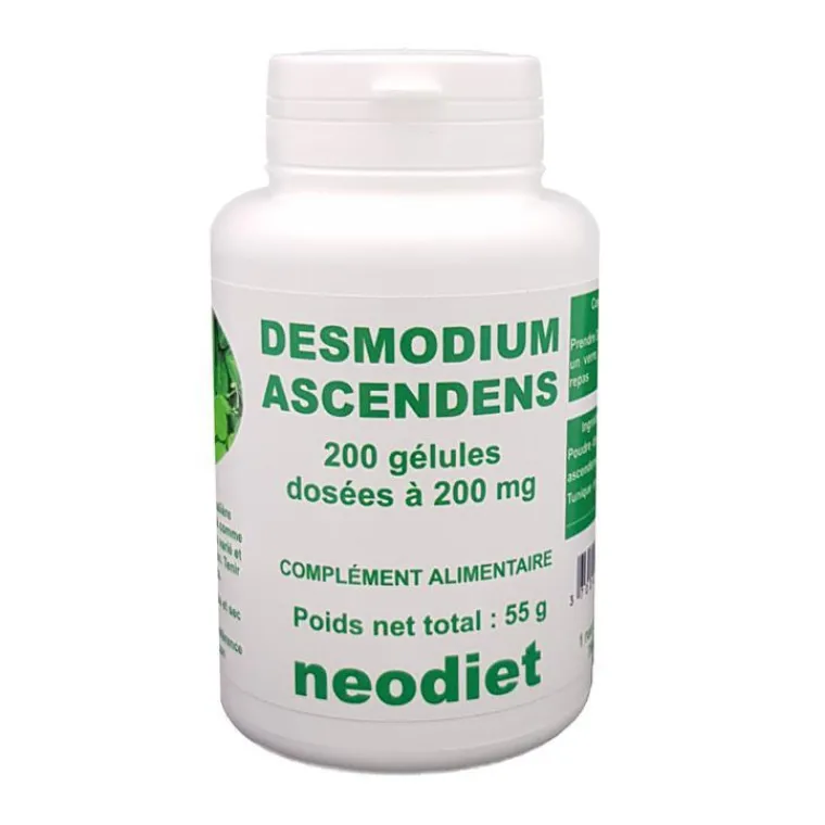 | Composition | Pour 6 gélules : poudre de feuille de desmodium ascendens, tunique en gélatine et glycérine.