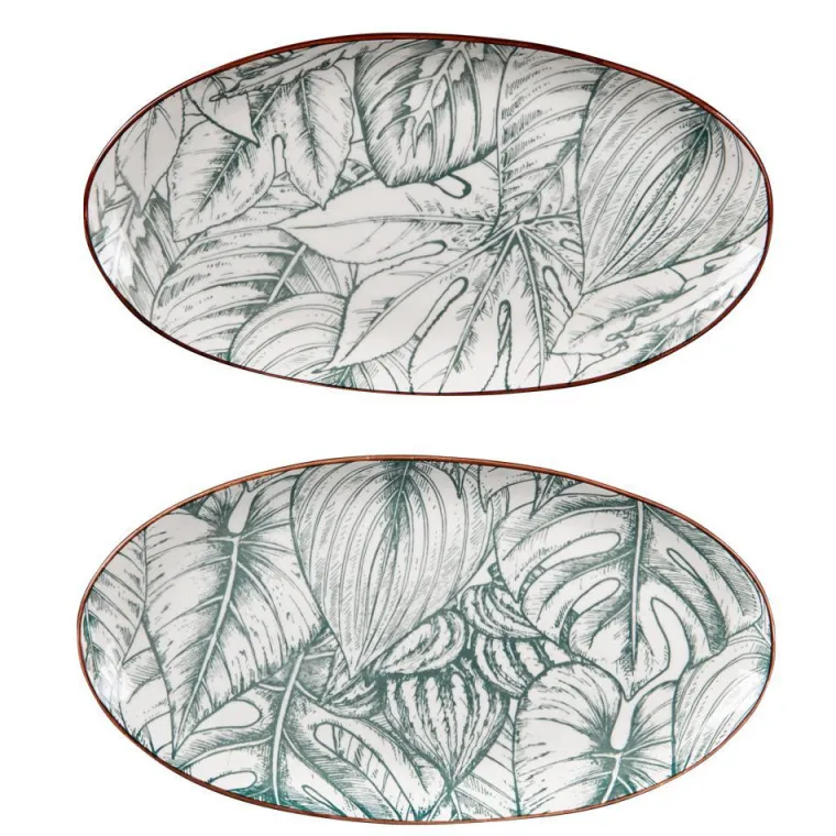 Hot Porte-bougie forme feuille en métal vert et or – Ø 13 x 4 cm