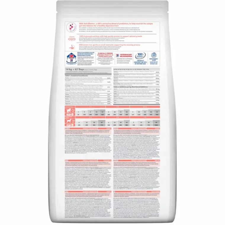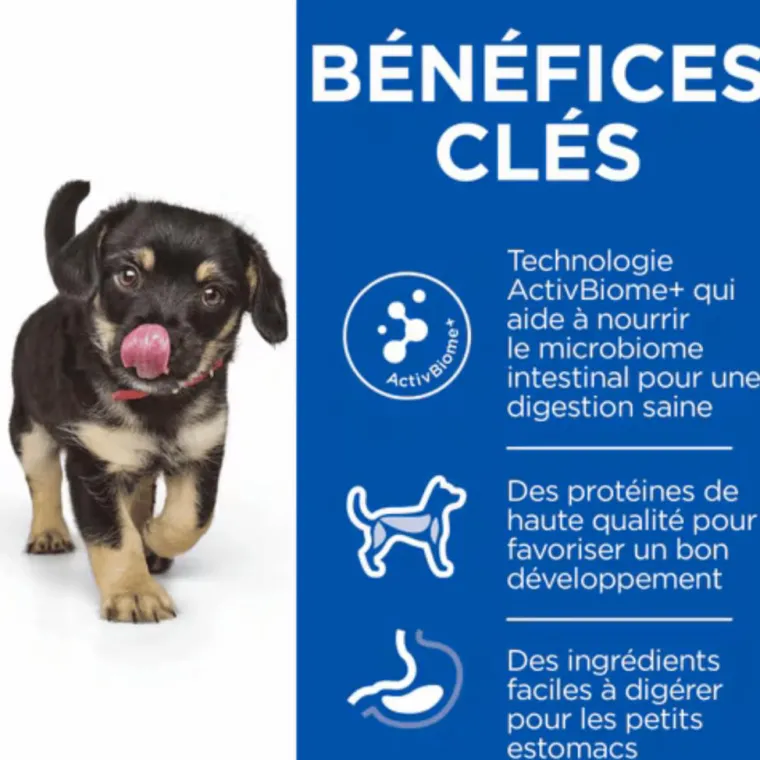 | Composition | Protéines déshydratées de poulet et de dinde (poulet 17 %; total volaille 27 %), maïs, froment, graisses animales, hydrolysat, riz complet (4 %), riz de brasserie, farine de gluten de maïs, orge, avoine, minéraux, coques de noix de pécan moulues, graines de lin, pulpe de betterave séchée, huile végétale, pulpe d’agrumes déshydratée, huile de poisson, canneberges séchées. Mélange prébiotique ActivBiome+ (4 %) : Coques de noix de pécan moulues, graines de lin, pulpe de betterave séchée, pulpe d’agrumes déshydratée, canneberges séchées.