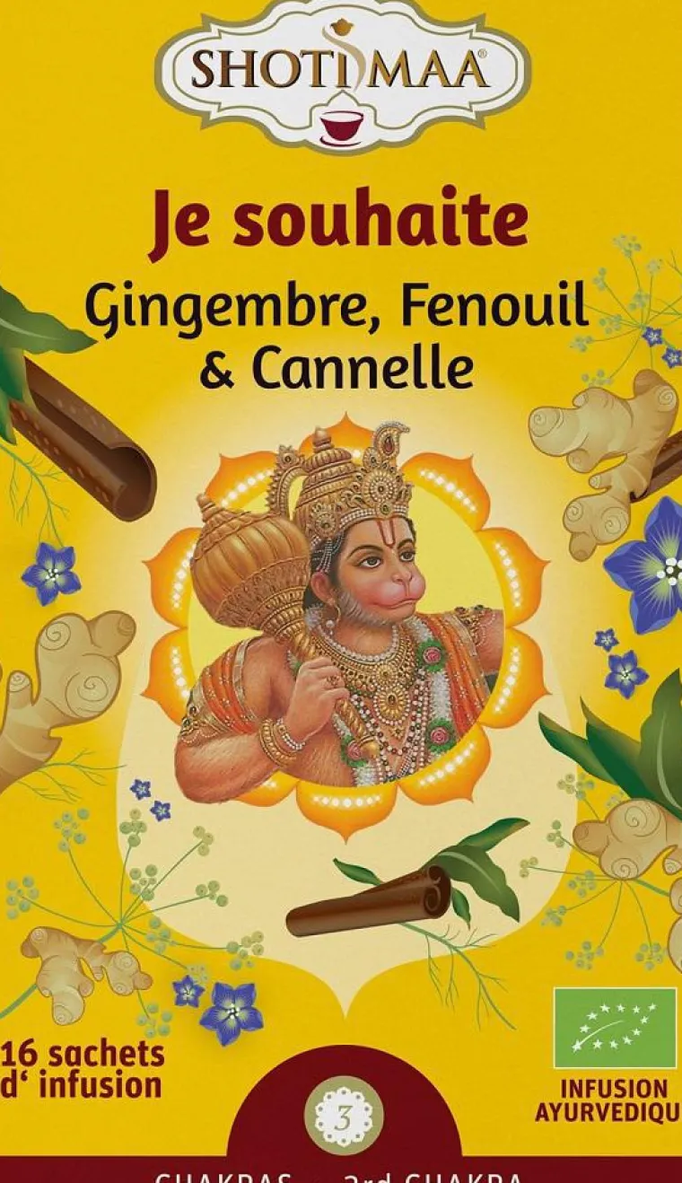 | Composition | Gingembre* (35%), fenouil* (25%), cannelle* (10%), coques de cacao*, anis*, cardamome*, curcuma*, poivre noir*, clous de girofle*. contient les ingrédients allergènes suivants : mollusque *culture biologique contrôlée