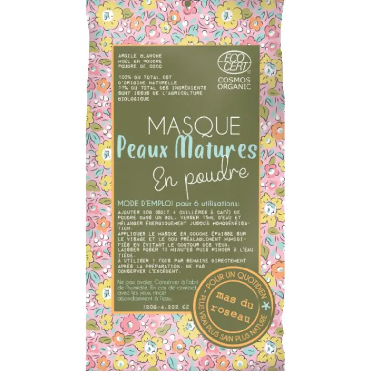 | Conseils d’entretien | Ne pas avaler. Conserver à l’abri de l’humidité. En cas de contact avec les yeux, rincer abondamment à l’eau.Utilisation: Ajouter 20 g (soit 4 cuillères à café) de poudre dans un bol, verser 15 ml d’eau et mélanger jusqu’à homogénéisation. Appliquer le masque en couche épaisse sur le visage et le cou préalablement humidifiés en évitant le contour des yeux. Laisser poser 10 minutes puis rincer à l’eau tiède. A utiliser 1 fois par semaine directement après la préparation. Ne pas conserver l’excédent.