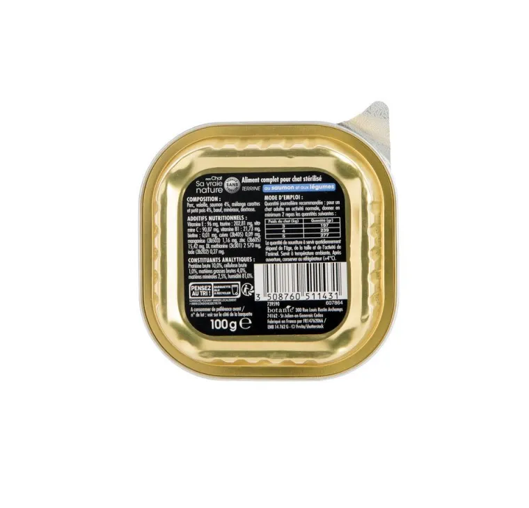 | Conseils d’entretien | Servir à température ambiante. Après ouverture, conserver au réfrigérateur ( +4°C). Il est recommandé d’adapter la quantité selon, l’activité, la race et l’age de votre animal.