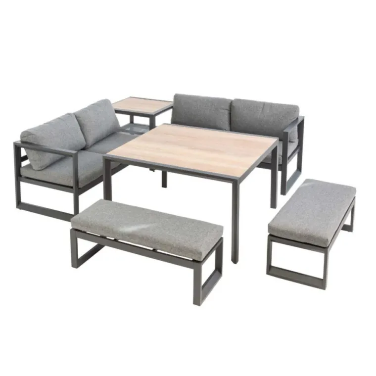 | Conseils d’entretien | Néttoyage de la structure à l’eau savonneuse et coussins suivant instruction de lavage