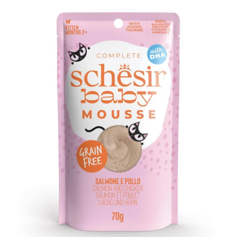 | Composition | saumon 31%, poulet 29%, bouillon de saumon 29%, foie de poulet 4%, amidon de tapioca, huile de tournesol raffinée, poudre d’œuf, minéraux, huile de thon, inuline de chicorée.