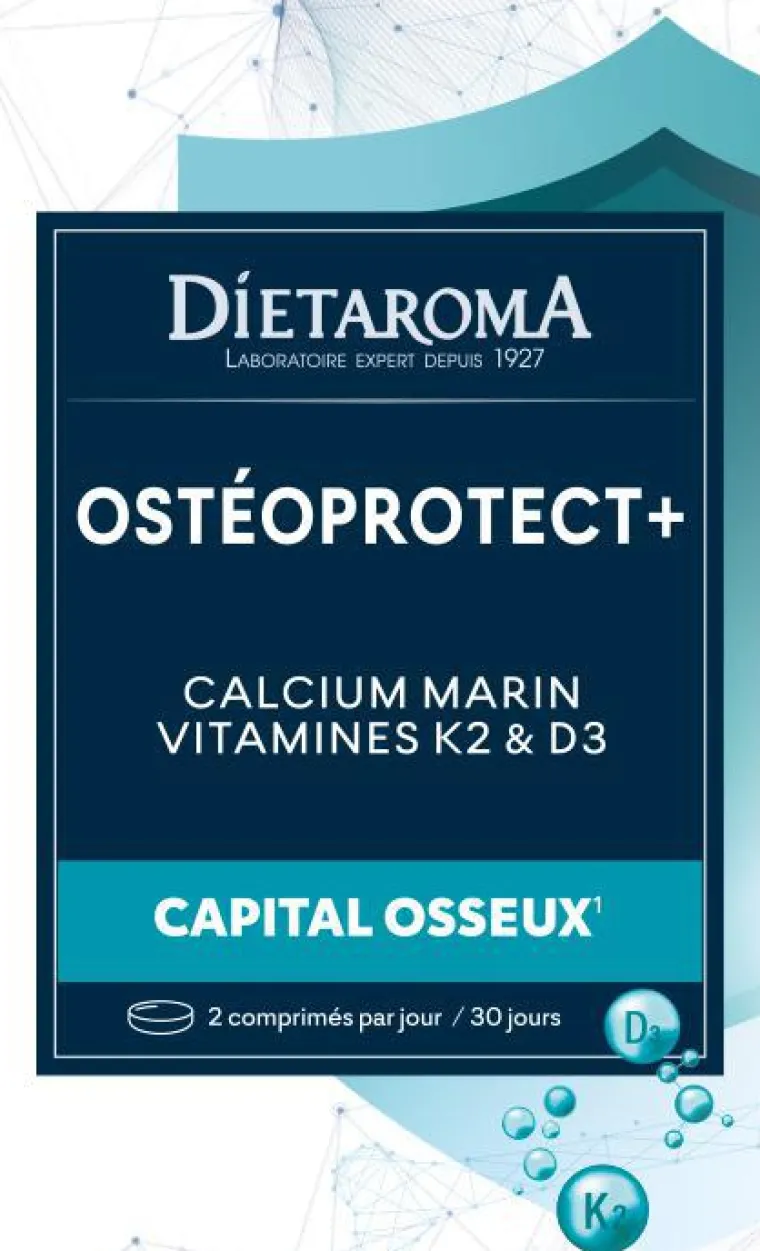 | Composition | Calcium extrait d’algue marine (Lithothamnium sp.) ; agent de charge : gomme d’acacia ; amidon de riz ; vitamine K2 (ménaquinone) ; vitamine D3 végétale (cholécalciférol) extraite de lichen.
