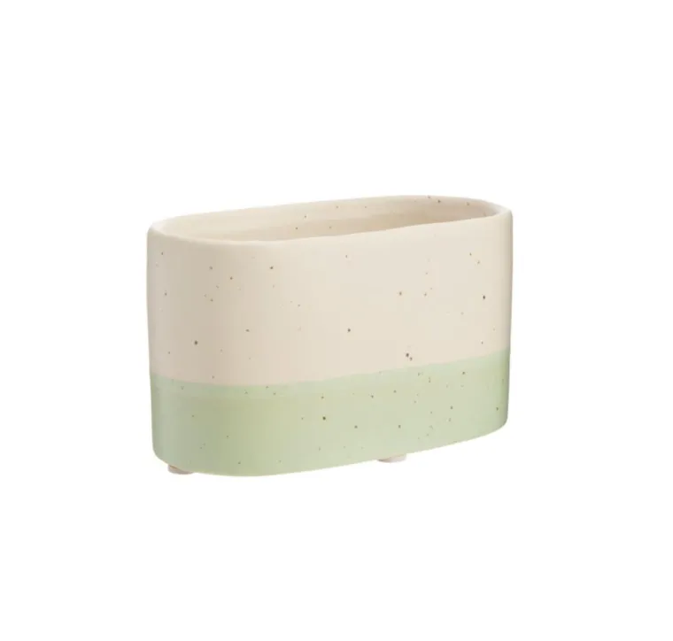 Porte bougie en céramique bicolore naturel/vert petit modèle – Ø 10 x H 17,5 cm