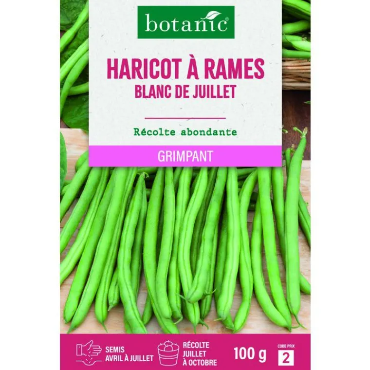 | Variété | Haricot a rames blanc de juillet a rames mangetout