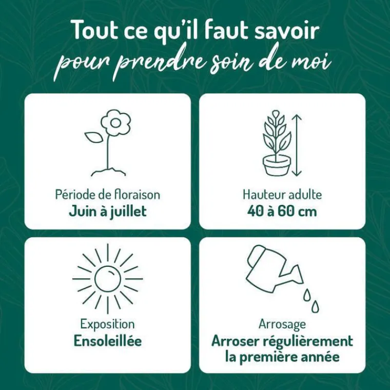 | Distance de plantation | 40 CM – 6 PLANTES/M2