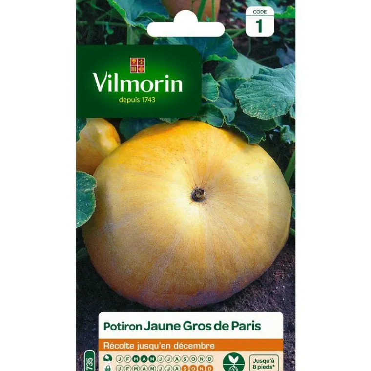 | Conseils d’entretien | Pour avoir de gros potirons, recouvrez par endroit la tige de terre, pour permettre la création de nouvelles racines. Il aime une exposition très ensoleillée.
